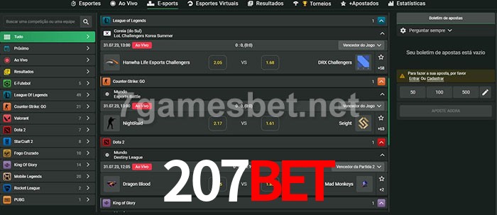O 207Bet oferece uma grande seleção de opções de apostas em e-sports com probabilidades competitivas